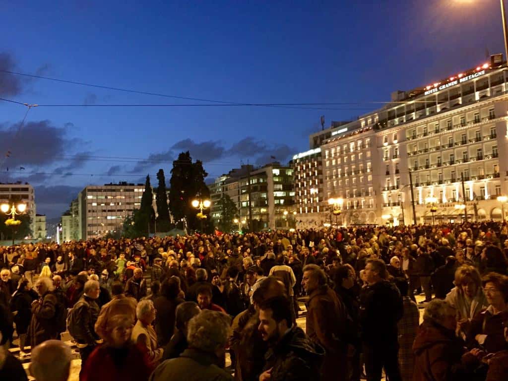 Πλήθος κόσμου είχε συγκεντρωθεί στην πλατεία Συντάγματος, μετά το κάλεσμα που διαδόθηκε ιδιαίτερα γρήγορα μέσα από το διαδίκτυο και τα social media. Χιλιάδες πολίτες έχουν μαζευτεί, θέλοντας να περάσουν ένα μήνυμα στήριξης στην κυβέρνηση, ενάντια στις πιέσεις.