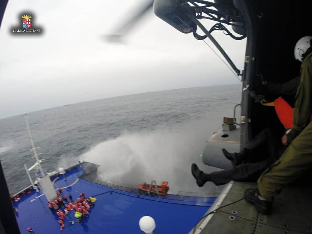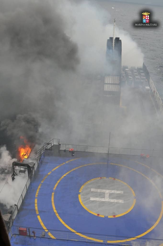Ο Ιταλικό Ναυτικό έδωσε στη δημοσιότητα φωτογραφίες πάνω από το φλεγόμενο «Norman Atlantic», με τους διασώστες και τους επιβάτες που βρίσκονταν εκείνη την ώρα στο κατάστρωμα.