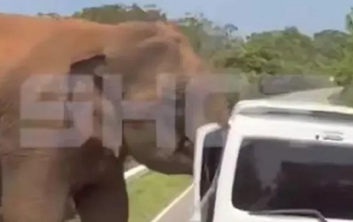 Εφιαλτικές στιγμές έζησαν στη Σρι Λάνκα Ρώσοι τουρίστες, όταν ελέφαντας επιτέθηκε σε mini bus που τους μετέφερε, ξεριζώνοντας μια πόρτα ενώ έψαχνε για φρούτα.